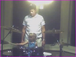 "Showing Master Ray how to play the drums..."